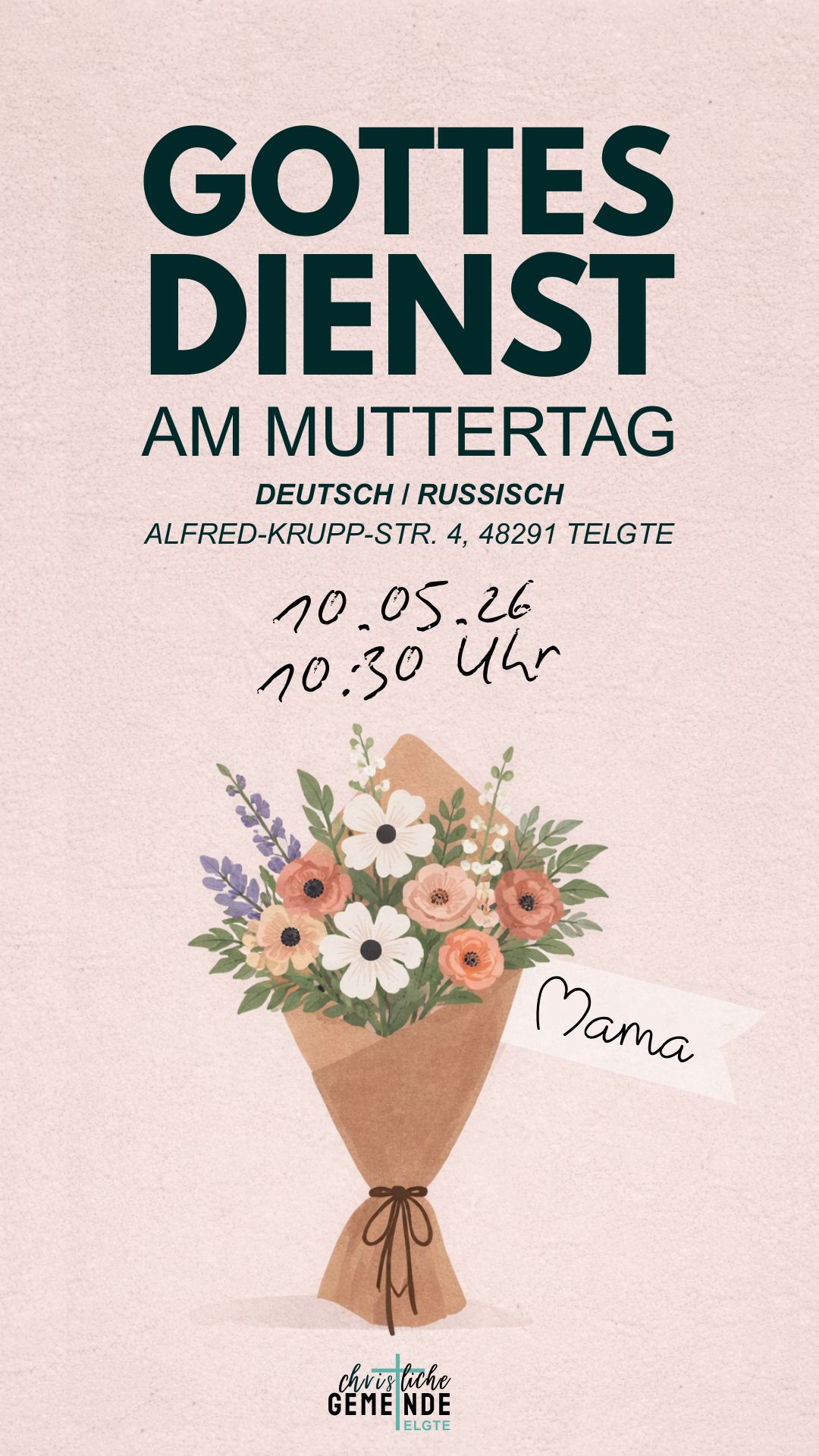 Am 10.05.2026 möchten wir diesen besonderen Tag gemeinsam feiern und Gott dafür danken, dass er uns Mütter geschenkt hat.